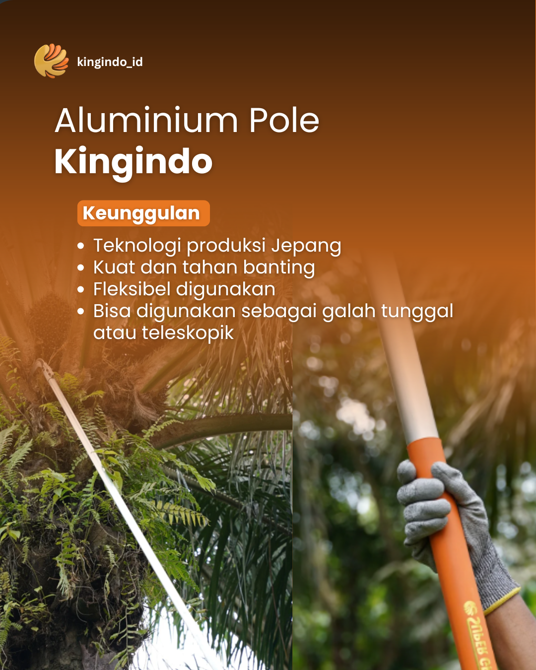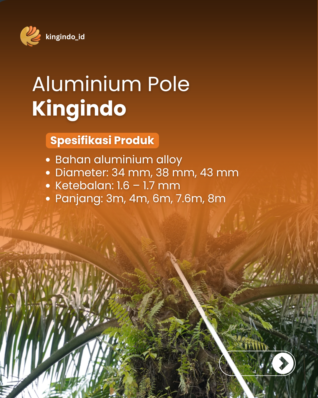 Professional Poles Made from aluminium material to ensure lightweight, strong and durable poles for your usage.Available in various lengthsingle pole from 4 Meters up to 8 Meterstelescopic pole from 8 Meters up to 18 Meters.